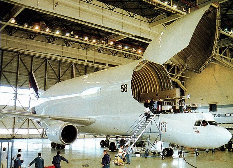 Nimensä Beluga sai maitovalaista, joita se muistuttaa muodoiltaan. Koneita on rakennettu vain viisi kappaletta. Ennen Belugaa Airbus käytti logistiikassaan vuodesta 1972 alkaen neljää Boeing 377 Stratocruiserista muokattua Super Guppy -rahtikonetta (kuva yllä). Niiden koko nokka ohjaamoineen kääntyi sivulle kuormausta varten. Belugassa tämä hankala ja paljon oven sulkemisen jälkeisiä järjestelmävarmistuksia vaatinut ominaisuus vältettiin laskemalla ohjaamo alemmaksi kuin alkuperäisessä A300-koneessa. Siten valtavan rahtitilan luukku voitiin suunnitella ylös aukeavaksi ja ohjaamoa ei tarvinnut liikuttaa. Juuri tämä ratkaisu toi Belugalle sille nimen antaneen ominaisen ulkonäön. Ensimmäinen rahti haettiin Helsinki-Vantaalta