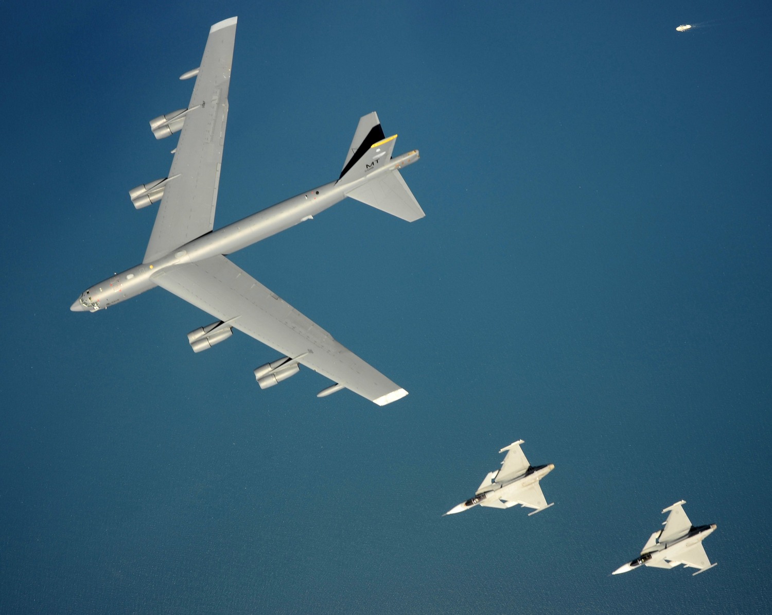 Raskaan ydinasekykyisen strategisen pommikoneen vierailu näin pohjoisessa on harvinaista. Viron yllä kone oli varsin lähellä Venäjän rajaa. Aivan ainutlaatuisesta tapahtumasta ei kuitenkaan ollut kyse. Vuonna 2015 Stratofortress -pommikone lensi Itämeren yllä yhdessä neljän ruotsalaisen Saab JAS 39C Gripen -hävittäjän kanssa (kuva yllä). Näyttävä muodostelma liittyi meneillään olleeseen BALTOPS15-harjoitukseen ja B-52:n miinoitustehtävään. Myös Suomi osallistui harjoitukseen. Viime viikon perjantaina Fairfordiin tukeutuva B-52H lensi eteläisellä Itämerellä kohti Venäjän Kaliningradin enklaavia. Se kuitenkin kääntyi takaisin hyvissä ajoin. Luonnollisesti on mahdollista ja jopa todennäköistä, että B-52-koneet ovat muulloinkin lentäneet Itämeren kansainvälisessä ilmatilassa mutta käyttämättä transponderiaan.